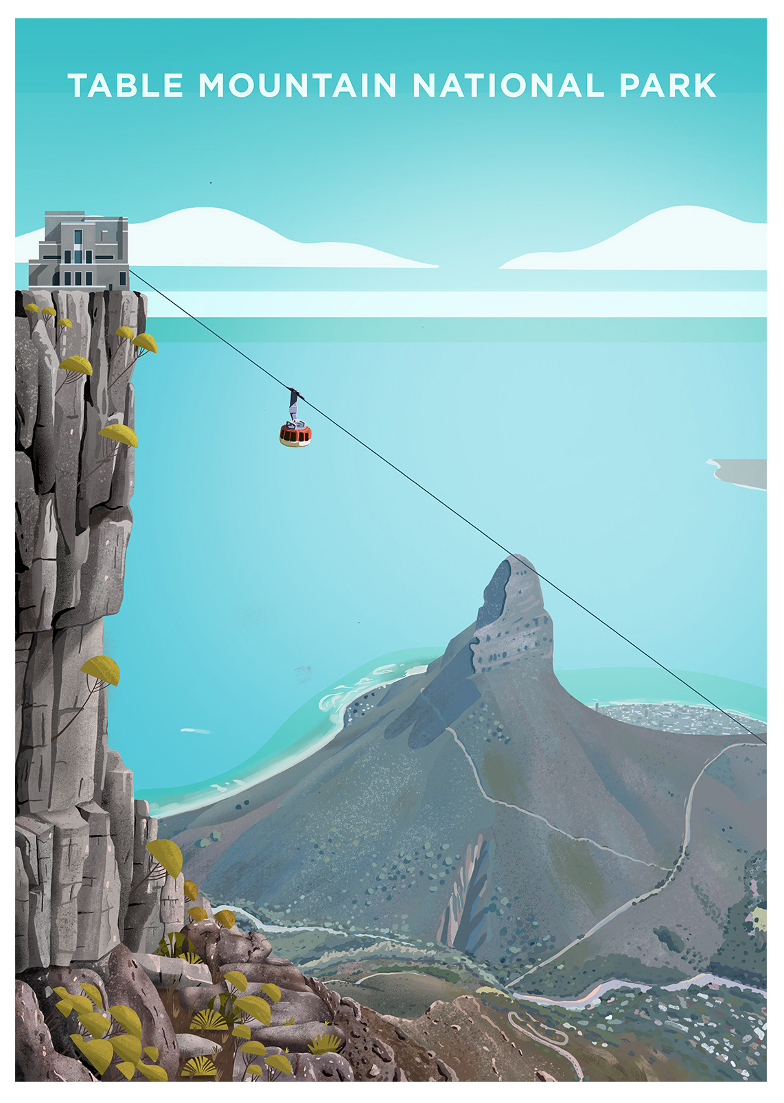 A new poster celebrating the Table Mountain National Park in Cape Town. The only national park surrounded by both city and sea.